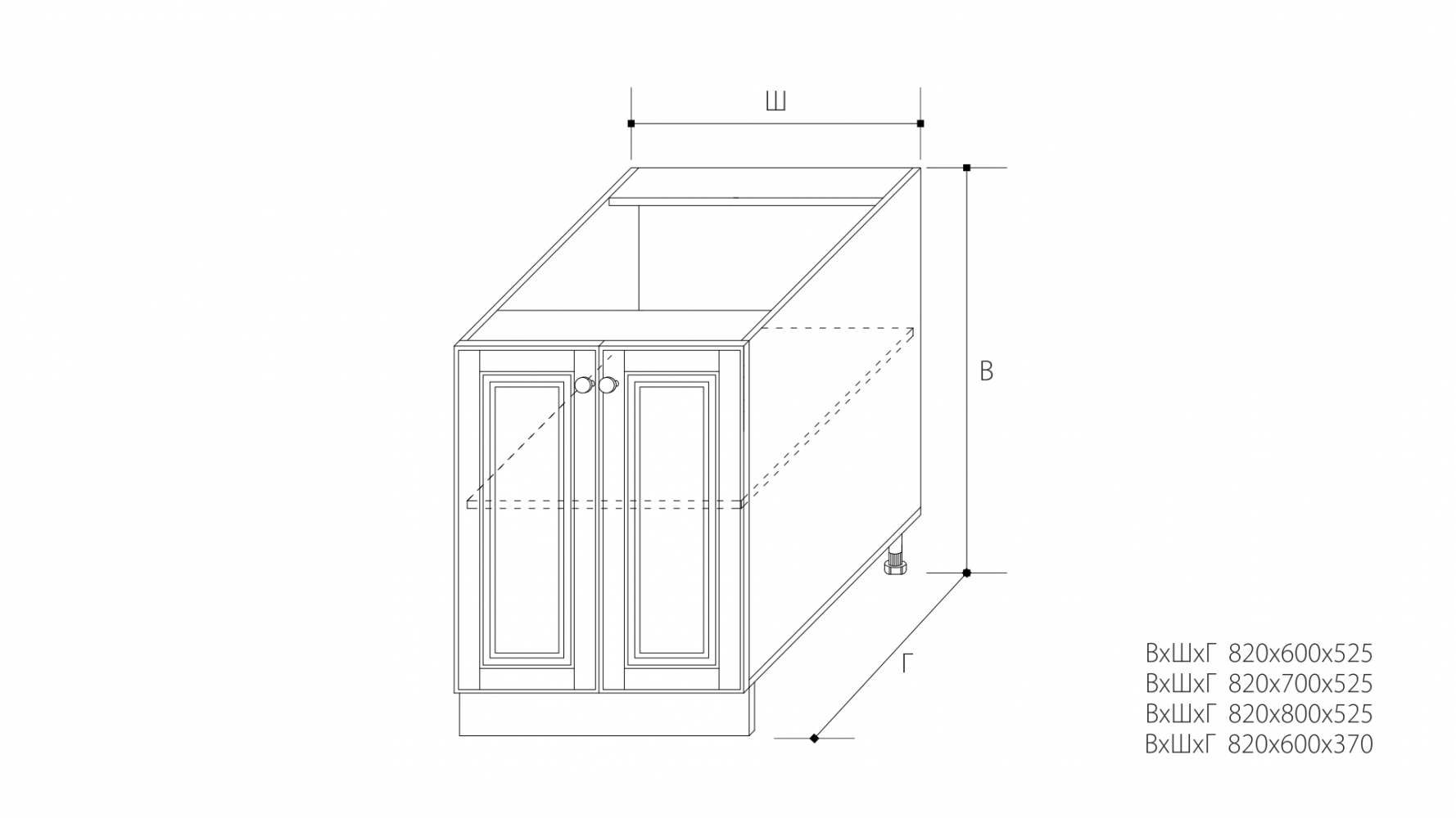 ВхШхГ: 820х800х525 мм.